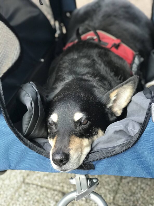 Dagegen gefällt ihr der neue Transportwagen von Leonpets richtig gut. Die große Veränderung hat einfach die Schiebemöglichkeit gebracht. Seitdem Milla das verstanden hat, liegt sie gerne im Wagen, sie schläft sogar im Wagen liegend ein und unser Aktionsradius mit altem Hund hat sich deutlich vergrößert.